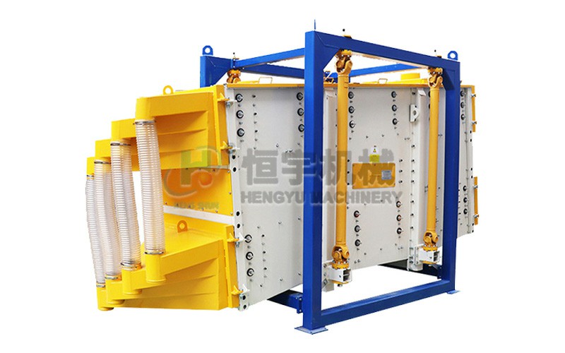 單純追求篩分精度會犧牲產(chǎn)量為代價,而追求大產(chǎn)量又會使得精度下降,方型搖擺篩是針對上述問題而專門設計的一種具有高精度大產(chǎn)量的篩分設備,通過方型精密搖擺篩將振動器發(fā)生振動加搖擺運動,傳至篩面,從而使物料在篩機前部迅速分散,從而達到篩分之目的。